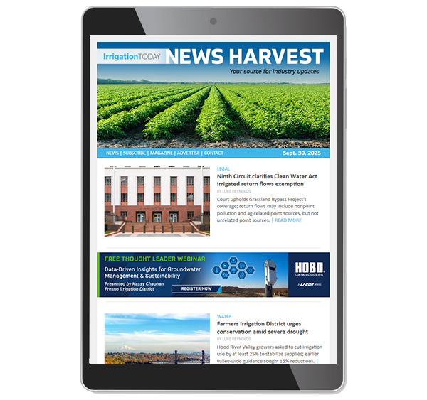 Irrigation Today is your direct link to growers and decision-makers in the irrigation industry. As the only publication focused specifically on on-farm irrigation, we are the go-to resource for essential insights and innovations in agriculture irrigation.