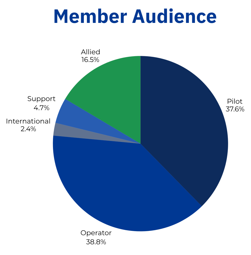 With more than 1,600 members across 46 states, a majority are licensed as commercial applicator/operators, including approximately 1,560 aerial application businesses and 3,400 ag pilots in the United States. The agricultural aviation industry is comprised of small businesses and pilots that use aircraft to aid farmers in producing a safe, affordable and abundant supply of food, fiber and bioenergy, in addition to protecting forestry and controlling health-threatening pests. Aerial applications are conducted in all 50 states.
